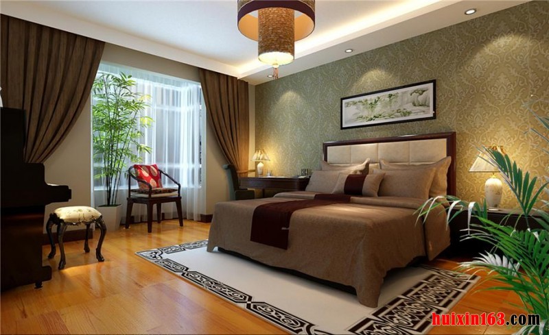 古典居家不会太过于浓厚、恰如其分的搭配,却可以完全沉浸在古典的中式风情当中,从而享受古味的美好,在卧室的设计当中,通过独具匠心的搭配,让居室环境显得比较充实而紧凑,洁白的石膏板吊顶与地砖的色彩成鲜明的反差,却又做到了相互呼应的效果,背景墙一张明清时代的壁画悬挂,让空间氛围显得更加的时尚、稳重。