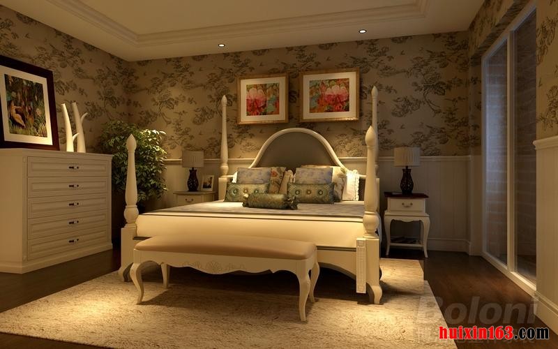 房间则采用一些简洁的手法,但不失古典情结的元素。在卧室弄了一个飘窗,使得卧室看起来更加明亮,卧室低调中不失奢华与大气,沉稳内敛中不失温馨与灵动,充满韵味的整体色调搭配电视背景墙独特的造型,整体效果和谐、高雅。
