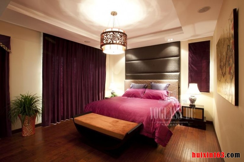 房间则采用一些简洁的手法,但不失古典情结的元素。在卧室弄了一个飘窗,使得卧室看起来更加明亮,卧室低调中不失奢华与大气,沉稳内敛中不失温馨与灵动,充满韵味的整体色调搭配电视背景墙独特的造型,整体效果和谐、高雅。