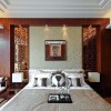 房间则采用一些简洁的手法,但不失古典情结的元素。在卧室弄了一个飘窗,使得卧室看起来更加明亮,卧室低调中不失奢华与大气,沉稳内敛中不失温馨与灵动,充满韵味的整体色调搭配电视背景墙独特的造型,整体效果和谐、高雅。