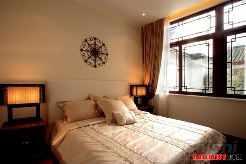房间则采用一些简洁的手法,但不失古典情结的元素。在卧室弄了一个飘窗,使得卧室看起来更加明亮,卧室低调中不失奢华与大气,沉稳内敛中不失温馨与灵动,充满韵味的整体色调搭配电视背景墙独特的造型,整体效果和谐、高雅。