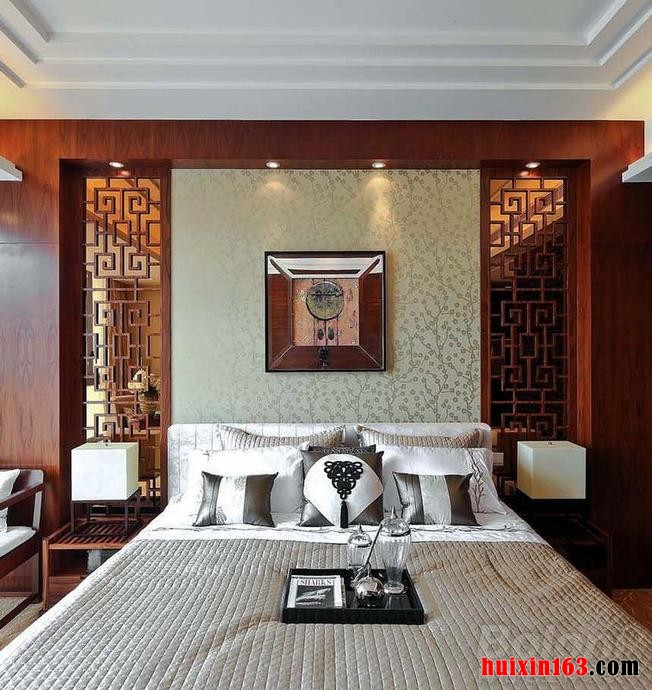 房间则采用一些简洁的手法,但不失古典情结的元素。在卧室弄了一个飘窗,使得卧室看起来更加明亮,卧室低调中不失奢华与大气,沉稳内敛中不失温馨与灵动,充满韵味的整体色调搭配电视背景墙独特的造型,整体效果和谐、高雅。