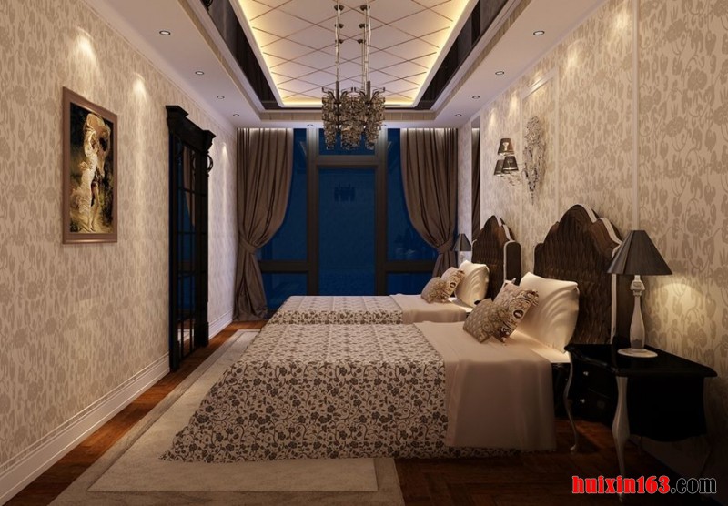 卧室凹凸有致古典吊顶,体现出一种大气,为房间增添了几分庄严。一盏吊灯悬挂在天花板上,增添了几分美观。显示出一种个性。古典的家具,给人很好的立体感,为房间添姿,彰显了一份成熟与稳重。空间层次感十足,端正稳健、精致华美。居室在色彩方面秉承了传统古典风格的典雅和华贵,但与之不同的是加入了很多现代元素,呈现着时尚的特征。