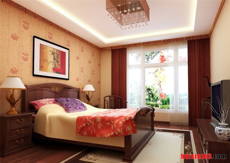 卧室在配饰的选择方面更为简洁,少了许多奢华的装饰,更加流畅地表达出传统文化中的精髓。为了给居室增添几分暖意,使整体装饰色彩和谐而不单调,营造一种温馨舒适的休息氛围。