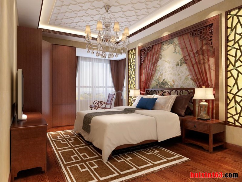 卧室在配饰的选择方面更为简洁,少了许多奢华的装饰,更加流畅地表达出传统文化中的精髓。为了给居室增添几分暖意,使整体装饰色彩和谐而不单调,营造一种温馨舒适的休息氛围。