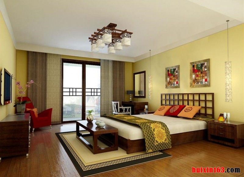 本套装修为古典型装修,卧室地面采用地板装修,局部采用地毯来进行装饰,吊顶采用石膏板进行平顶吊顶,墙面采用大理石进行装修,加以吸顶灯进行装饰,墙面一台水晶电视,床头放置两个台灯,方便我们使用,镂空似的平板,白色的曼帘,将现代元素与古典元素相结合,打造富有传统韵味的空间,给人一种沉稳,纯洁、优美,协调、舒适的视觉感受!