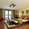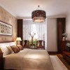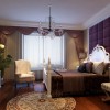 走进卧室,首先的看到的棕色的床,床上的四件套整齐的摆放着,透出古典的感觉。整体设计豪华大气,端庄时尚。棕色的吊顶悬挂着三盏喇叭花样式的吊灯,浪漫的气氛自然流露,给人特别舒服的状态。整体营造出儒雅端庄、隽秀典雅的古典风格家居。