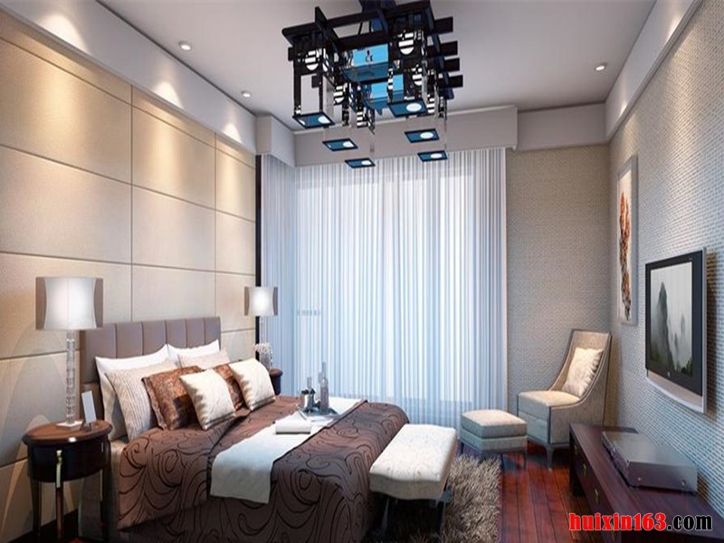 本套装修为古典型装修,卧室地面采用地板装修,局部采用地毯来进行装饰,吊顶采用石膏板进行平顶吊顶,墙面采用大理石进行装修,加以吸顶灯进行装饰,墙面一台水晶电视,床头放置两个台灯,方便我们使用,镂空似的平板,白色的曼帘,将现代元素与古典元素相结合,打造富有传统韵味的空间,给人一种沉稳,纯洁、优美,协调、舒适的视觉感受!