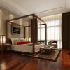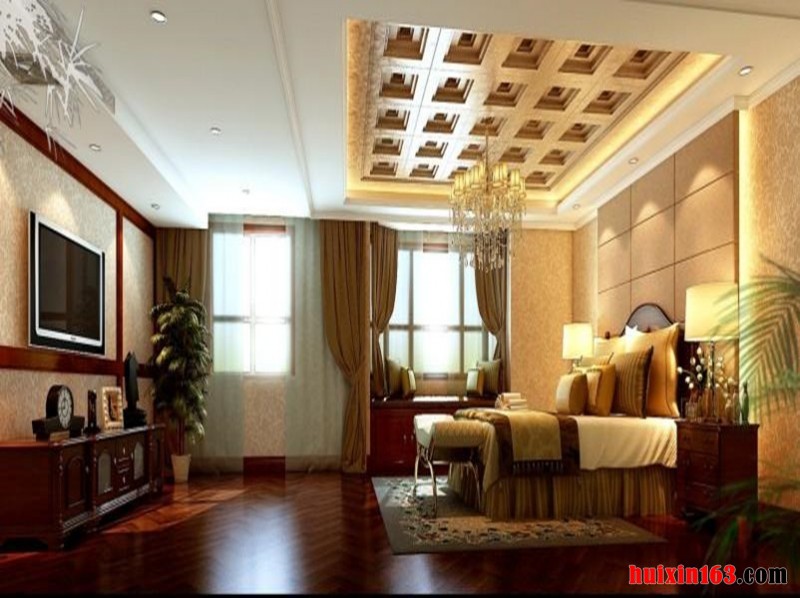 本套装修为古典型装修,卧室地面采用地板装修,局部采用地毯来进行装饰,吊顶采用石膏板进行平顶吊顶,墙面采用大理石进行装修,加以吸顶灯进行装饰,墙面一台水晶电视,床头放置两个台灯,方便我们使用,镂空似的平板,白色的曼帘,将现代元素与古典元素相结合,打造富有传统韵味的空间,给人一种沉稳,纯洁、优美,协调、舒适的视觉感受!