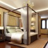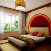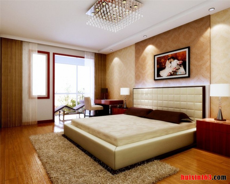 卧室吊顶采用格子吊顶设计,格子形状吊顶不仅看上去古典而且可以无聊时昂头的时候可以看到整个卧室的装潢,卧室里的实木的家具,十分有质感。整个空间高雅且独特。卧室的装饰十分温馨。对于其中的经典元素以及环境的描写,琳琅满目,精致的家具摆放,仅仅从字里行间就透露出一种古典而华贵的气质,一张亮丽的水晶吊灯安装,色泽不一的抱枕添加,将空间的色彩演绎得比较绚丽。