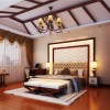 卧室吊顶采用格子吊顶设计,格子形状吊顶不仅看上去古典而且可以无聊时昂头的时候可以看到整个卧室的装潢,卧室里的实木的家具,十分有质感。整个空间高雅且独特。卧室的装饰十分温馨。对于其中的经典元素以及环境的描写,琳琅满目,精致的家具摆放,仅仅从字里行间就透露出一种古典而华贵的气质,一张亮丽的水晶吊灯安装,色泽不一的抱枕添加,将空间的色彩演绎得比较绚丽。