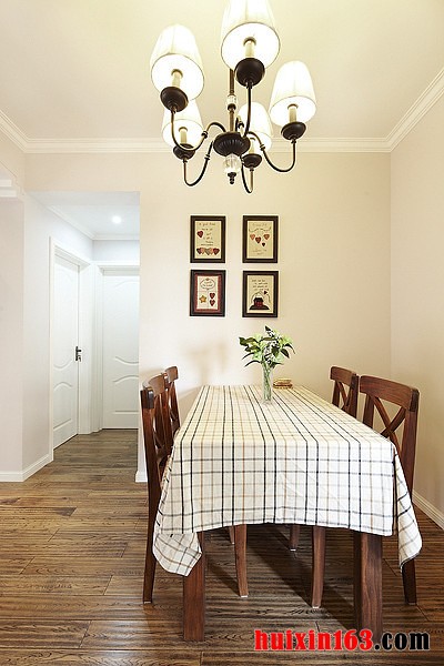本套餐厅装饰中空间内的色彩搭配比较平淡,这样的设计可以将吊灯以及家具的款式衬托的更加惊艳,铁艺吊灯的设计搭配上实木材质的家具,整体的搭配效果可以带给人们一种十分惊艳的感觉。