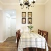 本套餐厅装饰中空间内的色彩搭配比较平淡,这样的设计可以将吊灯以及家具的款式衬托的更加惊艳,铁艺吊灯的设计搭配上实木材质的家具,整体的搭配效果可以带给人们一种十分惊艳的感觉。
