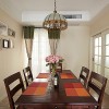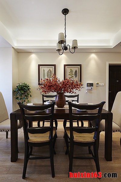 本套餐厅装饰中空间内的色彩搭配比较平淡,这样的设计可以将吊灯以及家具的款式衬托的更加惊艳,铁艺吊灯的设计搭配上实木材质的家具,整体的搭配效果可以带给人们一种十分惊艳的感觉。