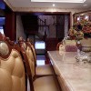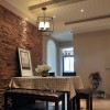 本套餐厅装饰的主色彩是以浅色调为主,原木材质的餐桌造型别致,却掩盖不住其材质所散发出的自然气息,石膏板吊顶的造型设计十分具有个性,中间一盏设计感十足的吊灯更是可以彰显出时尚的气息。