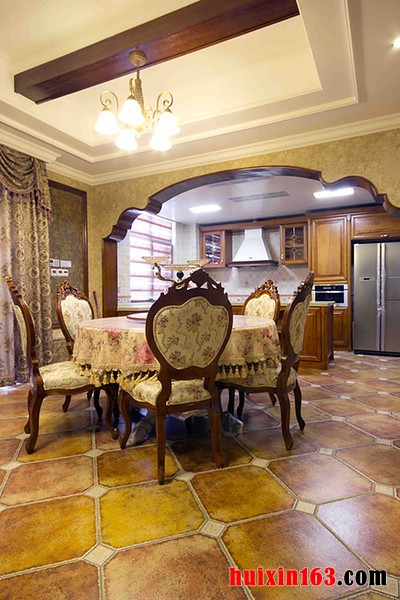 美式风格的装饰一般会以简约为主,空间内的整体设计并不会有过于夸张,装饰的色彩也会比较素雅,整体的装饰效果可以带给人们一种自然的清新感,整体的装饰也会带给人们一种舒适的体验,这也是近年来美式风格越来越受追捧的原因之一。 本套餐厅装饰中石膏板吊顶的造型设计比较简洁,但并不会带给人们单调的感觉,而是将中间的吊灯衬托的更加别致,实木餐桌上搭配了素雅的桌旗,可以将瓷质餐具衬托的更加精美。 更多»推荐家装效果图