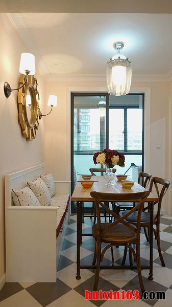 美式风格现下越来越受年轻人喜爱,它主要想表达的是一种轻松与舒适的自然感,可以让人们忙碌一天回到家后感到无比的放松,在空间内的装饰物品不仅美观,还要具有一定的实用性,这样会避免装饰繁杂的现象。 本套餐厅内的装饰整体效果可以带给人们一种大气感,空间内的装饰都比较简洁,没有夸张的造型设计,也没有艳丽的色彩搭配,素雅的空间内却也并不缺乏美感,餐桌上的格子桌旗更是可以彰显出房屋主人的品味。 更多»推荐家装效果图