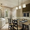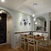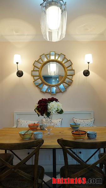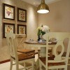 美式田园风格的装饰会带给人们一种自然感,空间内的色彩搭配以及家具款式都是比较简约的,装饰的整体效果可以带给人们一种舒适感,同时内部的细节处理又会展示出一丝惊艳,带给人们不同的感受。 本套餐厅装饰的整体效果可以带给人们一种唯美的视觉效果,空间内的石膏板吊顶采用了平顶式的设计,并在中间悬挂了一盏造型别致的吊灯,十分具有设计感,原木材质的餐桌也因此显得更加独特。 更多»推荐家装效果图