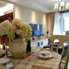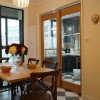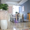 本套餐厅装饰的整体效果可以带给人们一种唯美的视觉效果,空间内的石膏板吊顶采用了平顶式的设计,并在中间悬挂了一盏造型别致的吊灯,十分具有设计感,原木材质的餐桌也因此显得更加独特。
