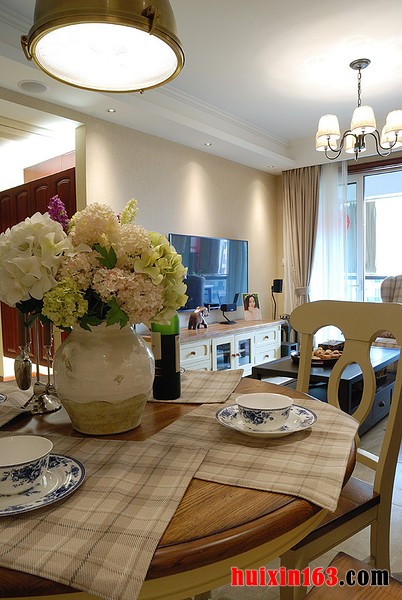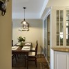 美式田园风格的装饰会带给人们一种自然感,空间内的色彩搭配以及家具款式都是比较简约的,装饰的整体效果可以带给人们一种舒适感,同时内部的细节处理又会展示出一丝惊艳,带给人们不同的感受。 本套餐厅装饰的整体效果可以带给人们一种唯美的视觉效果,空间内的石膏板吊顶采用了平顶式的设计,并在中间悬挂了一盏造型别致的吊灯,十分具有设计感,原木材质的餐桌也因此显得更加独特。 更多»推荐家装效果图