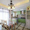 本套餐厅装饰的整体效果可以带给人们一种唯美的视觉效果,空间内的石膏板吊顶采用了平顶式的设计,并在中间悬挂了一盏造型别致的吊灯,十分具有设计感,原木材质的餐桌也因此显得更加独特。