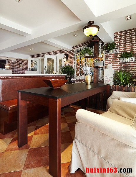 美式风格的居室设计中一般都不会添加过多的造型设计,而是靠软装饰来凸显风格特点,空间内的划分主要是通过削弱或强化梁柱来再造框架,也会通过色彩搭配来凸显装饰的亮点。