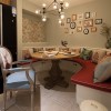 本套餐厅的设计比较具有个性,空间内的石膏板到顶采用了平顶式的设计,中间悬挂了一盏黑色铁艺灯饰,别致的造型十分具有设计感,下方的实木餐桌的设计比较简洁,但与空间内的所有装饰搭配在一起也会多了几分时尚感。