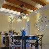本套餐厅装饰中空间内的色彩搭配主要是以白色为主,石膏板吊顶的设计也比较简洁,原本单调的设计在搭配上吊灯后显得十分别致,也将吊灯的衬托的更加别致并附有时尚感。