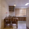 本套餐厅装饰中空间内的色彩搭配主要是以黑白两色为主,石膏板吊顶上安装了一盏银灰色的金属吊灯,在白色的背景下吊灯显得更加具有时尚气息,同时也将整个餐厅显得更加华美。