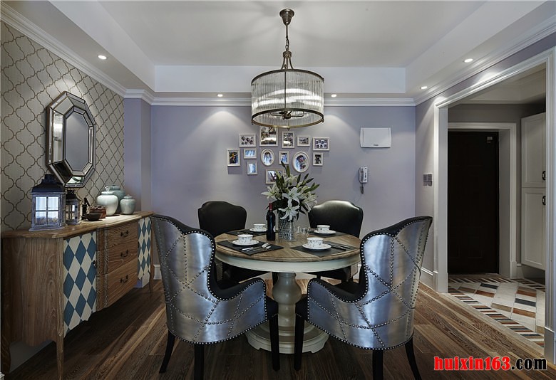 北美风格的居室装修中会有强烈的自然气息,无拘无束的设计最受年轻人追捧,偶尔个性化的装饰也并不会使装饰显得突兀,反而是为空间装饰增添了一份设计感,装饰的整体效果也会因此而显得十分精致。 本套餐厅装饰中空间内的色彩搭配主要是以黑白两色为主,石膏板吊顶上安装了一盏银灰色的金属吊灯,在白色的背景下吊灯显得更加具有时尚气息,同时也将整个餐厅显得更加华美。 更多»推荐家装效果图