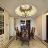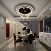 本套餐厅装饰中空间内的色彩搭配主要是以黑白两色为主,石膏板吊顶上安装了一盏银灰色的金属吊灯,在白色的背景下吊灯显得更加具有时尚气息,同时也将整个餐厅显得更加华美。
