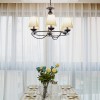 本套餐厅装饰中空间内的装饰比较简洁,石膏板吊顶的设计主要是以平顶式为主,中间一盏金属吊灯因此显得更加别致,下方的实木餐桌也在其他装饰的衬托下显得更加高档。