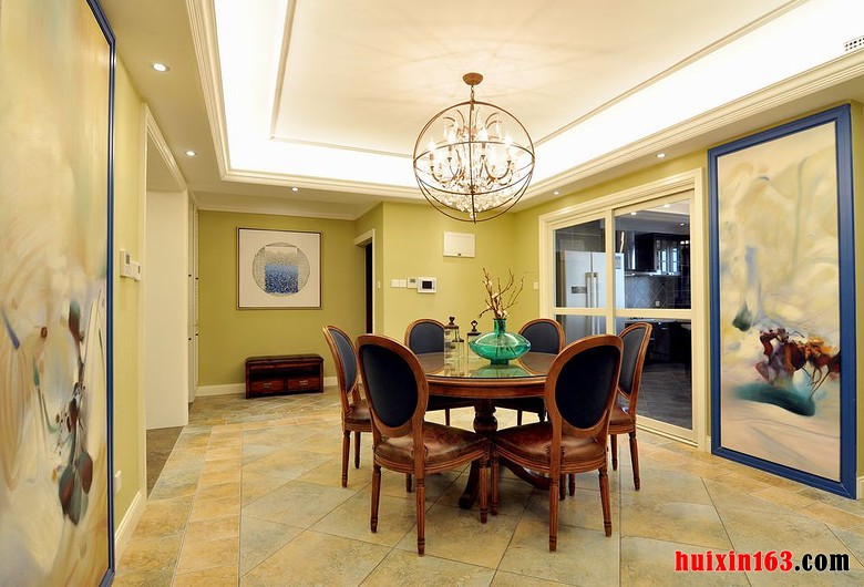 美式田园风格的居室内最好可以有一扇宽大的落地窗,明亮的杨过透过玻璃打在室内的墙壁上,在结合室内温馨的装饰自然会带给人们一种难以抗拒的舒适感,空间内的装饰最好以简约为主,这样会显得更加大气。 本套餐厅装饰中空间内的色彩搭配比较柔和,造型设计的也比较简洁,装饰的整体效果可以带给人们一种大气感,但仔细观察空间内部的细节处理,又会感受到一丝精美与别致。 更多»推荐家装效果图