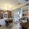 本套餐厅装饰的整体效果可以带给人们一种典雅的感觉,空间内的石膏板吊顶采用了圆形的设计,中间做了凹槽处理,可以使中间的铁艺吊灯显得更加别致,并附有个性,下方实木餐桌也因此而显得更加具有古典气息。