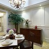 本套餐厅装饰的整体效果可以带给人们一种典雅的感觉,空间内的石膏板吊顶采用了圆形的设计,中间做了凹槽处理,可以使中间的铁艺吊灯显得更加别致,并附有个性,下方实木餐桌也因此而显得更加具有古典气息。
