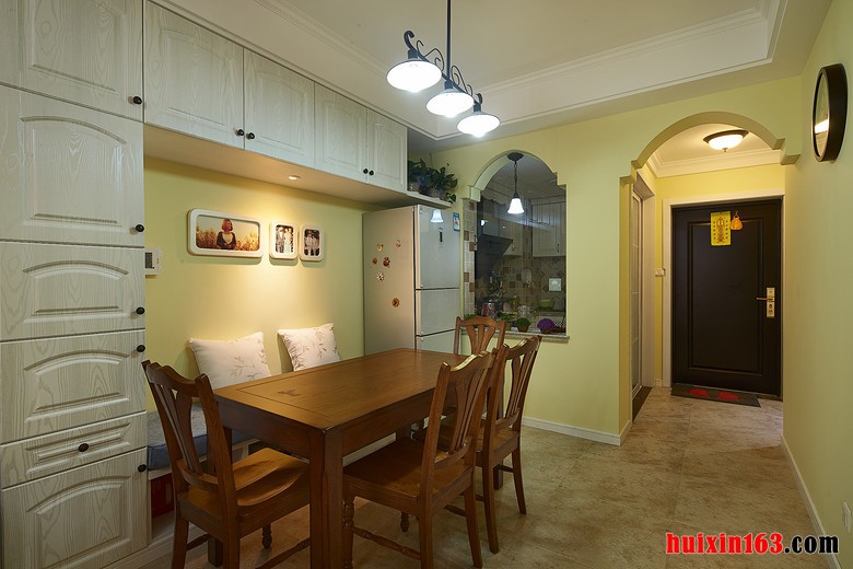 美式田园风格的居室装修内会大量的使用木、石、藤、竹、织物等比较具有天然色彩的建材装饰空间,整体可以营造出一种清新、自然的舒适感,可以带给人们不同的感受,实现下比较受年轻人追捧的风格之一。 本套餐厅装饰的整体效果会带有一丝古典的气息,空间内的家具主要是以实木材质为主,搭配上素雅的桌布更是可以将装饰的设计感全部都展现出来,餐桌上一束清新淡雅的花束摆放在中间,更是为装饰增添了亮点。 更多»推荐家装效果图