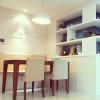 本套餐厅装饰的整体效果会带有一丝古典的气息,空间内的家具主要是以实木材质为主,搭配上素雅的桌布更是可以将装饰的设计感全部都展现出来,餐桌上一束清新淡雅的花束摆放在中间,更是为装饰增添了亮点。