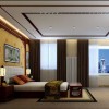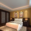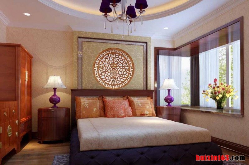 卧室设计温馨,空间利用色彩协调搭配,古典吊顶的材质和色调统一,突出浓厚的文化氛围和格调感,融合庄重与优雅的双重气质,把传统的结构形式通过古典的韵味来体现出来,体现业主对生活品味追求。