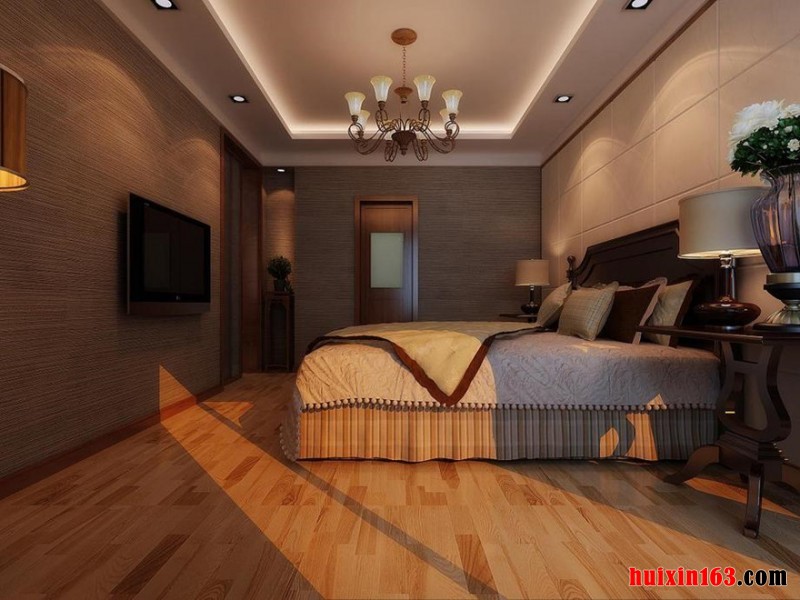 卧室设计温馨,空间利用色彩协调搭配,古典吊顶的材质和色调统一,突出浓厚的文化氛围和格调感,融合庄重与优雅的双重气质,把传统的结构形式通过古典的韵味来体现出来,体现业主对生活品味追求。