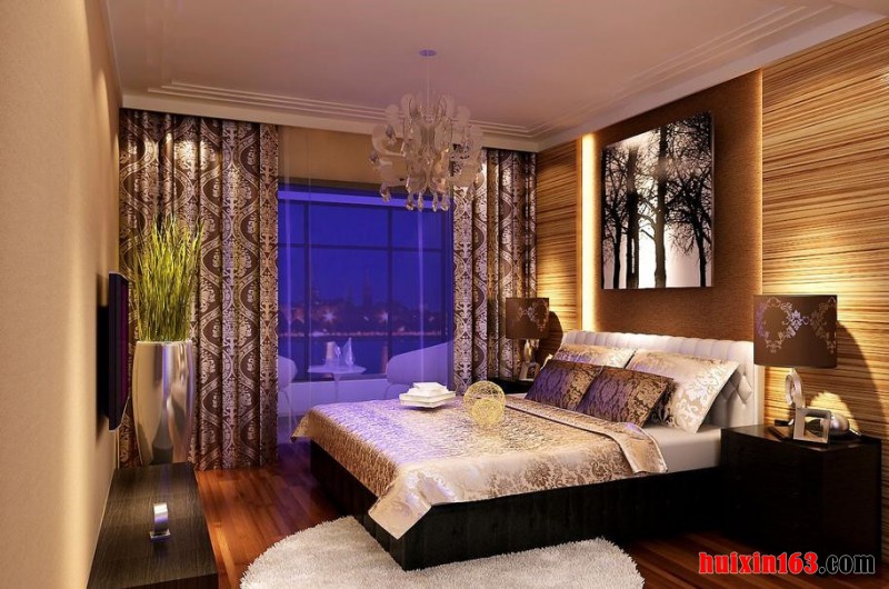 卧室设计温馨,空间利用色彩协调搭配,古典吊顶的材质和色调统一,突出浓厚的文化氛围和格调感,融合庄重与优雅的双重气质,把传统的结构形式通过古典的韵味来体现出来,体现业主对生活品味追求。