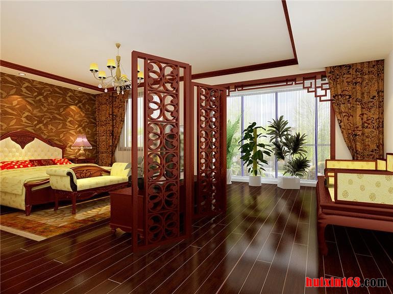 空间吊顶多采用简洁、硬朗的直线线条,古典的床,床上摆放了干净整洁的床上用品,室内采用了对称式的布局方式,造型简朴优美,色彩浓厚而成熟,格调高雅,整体给人一种古典的美。自然简洁,展现出古典家居风格。自然的木质色调使居室充满休闲的氛围,是快节奏都市生活的休恬的港湾。营造的是一种对生活的态度。