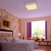 卧室一个需要身体和心灵休憩的地方, 需要的是宁静安谧。因此摒弃了繁华的造型,一圈石膏线点缀空间。深色的床头背景壁纸,让人增加安全感。壁挂电视使卧室不在无聊!