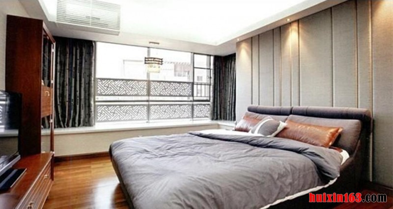 卧室一个需要身体和心灵休憩的地方, 需要的是宁静安谧。因此摒弃了繁华的造型,一圈石膏线点缀空间。深色的床头背景壁纸,让人增加安全感。壁挂电视使卧室不在无聊!