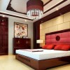 卧室吊顶以增加居室层次感而存在,石膏板吊顶与适当的实木线条配合,配以简约的布艺床,带给人温馨的家的感觉,增加居室古朴感,绿色的植物加以点缀增加一份风雅。家具的选择,依然选择布艺沙发,避免带给人硬朗的感觉。
