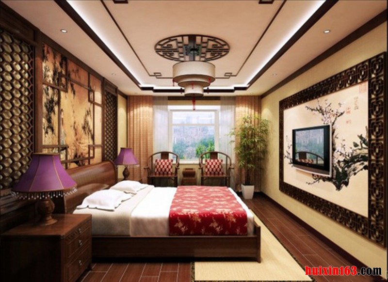 卧室在吊顶上采用四周做吊顶,中间不做吊顶,在配以射灯或者筒灯,这样会在视觉上增加空间的层高,室内设计是一种艺术,是一种文化。因此,在最简单的空间设计中,应把这种意识贯穿始终。彰显含蓄的风格。