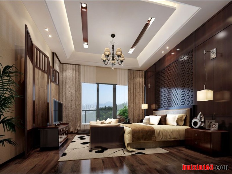 卧室在吊顶上采用四周做吊顶,中间不做吊顶,在配以射灯或者筒灯,这样会在视觉上增加空间的层高,室内设计是一种艺术,是一种文化。因此,在最简单的空间设计中,应把这种意识贯穿始终。彰显含蓄的风格。