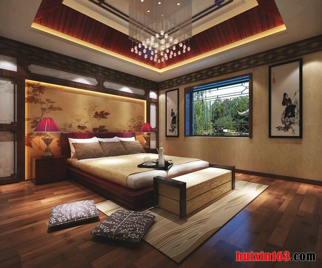 卧室在吊顶上采用四周做吊顶,中间不做吊顶,在配以射灯或者筒灯,这样会在视觉上增加空间的层高,室内设计是一种艺术,是一种文化。因此,在最简单的空间设计中,应把这种意识贯穿始终。彰显含蓄的风格。