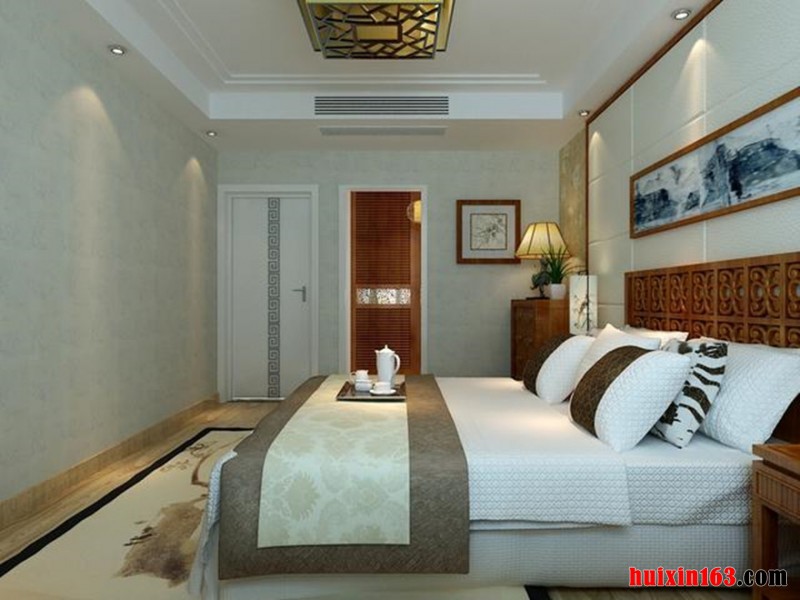 卧室在吊顶上采用四周做吊顶,中间不做吊顶,在配以射灯或者筒灯,这样会在视觉上增加空间的层高,室内设计是一种艺术,是一种文化。因此,在最简单的空间设计中,应把这种意识贯穿始终。彰显含蓄的风格。