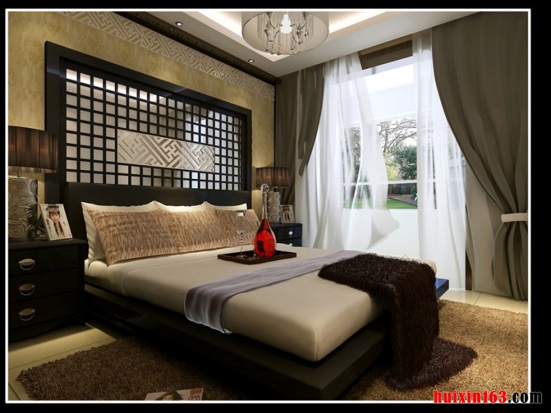 卧室在吊顶上采用四周做吊顶,中间不做吊顶,在配以射灯或者筒灯,这样会在视觉上增加空间的层高,室内设计是一种艺术,是一种文化。因此,在最简单的空间设计中,应把这种意识贯穿始终。彰显含蓄的风格。