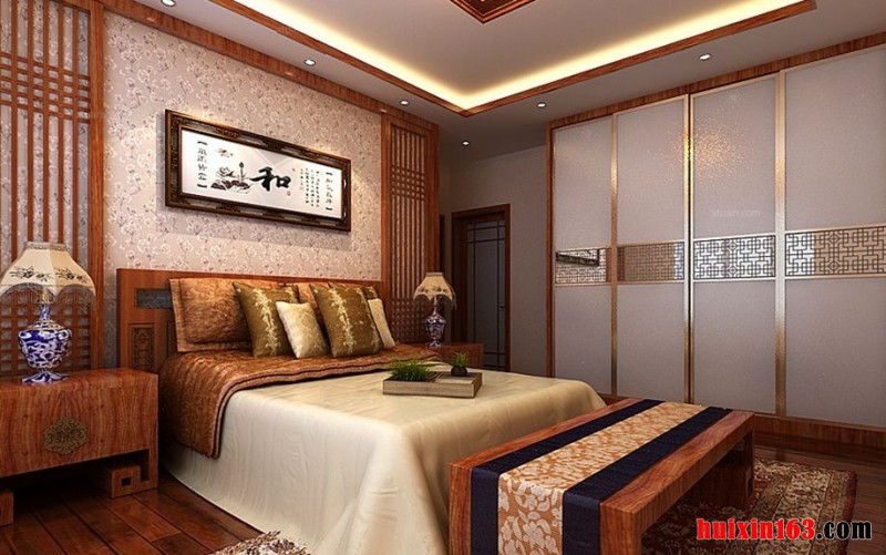 本套为古典风格装修,卧室以吊顶的图画风格相得益彰。画质细腻,搭配手法多样,让人印象深刻,空间无论在材质,线条,色彩搭配上都让居室散发着中式古典的魅力,整体给人一种自然、典雅、高贵的气度。